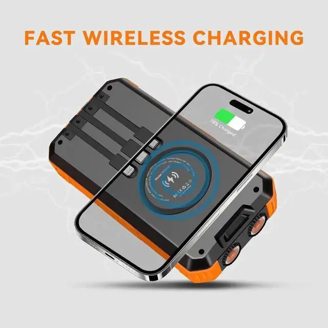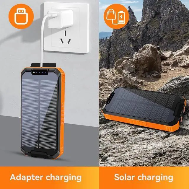 MULTI-PURPOSE OUTDOOR CHARGER: LUVKNIT portable solar power bank is made to be IPX5 waterproof dustproof and shockproof. The built-in dual super bright flashlights and the included compass carabiner can further ensure your safety when traveling outdoors making it an ideal companion for outdoor enthusiasts.