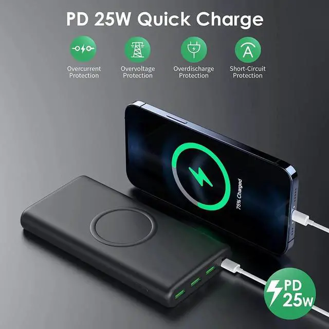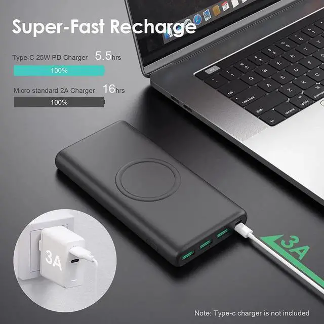 WIRELESS PORTABLE CHARGER: The product is featured by wireless charging (5W 7.5W 10W and 15W Max ) it can fast charge most Wireless devices as a large capacity rechargeable power supply and also can be a high-power fast cordless charger pad eliminate the embarrassment of forgetting the cable.