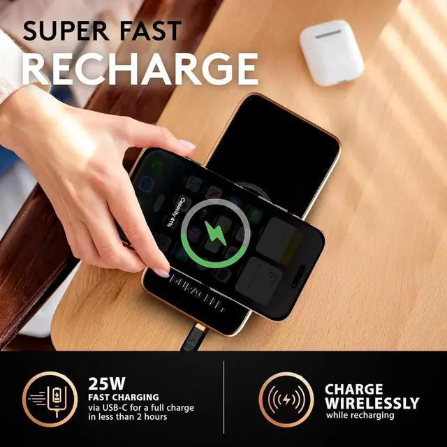 JAENFONG Core 10 Portable Charger | Wireless 10 000mAh Power Bank for iPhone iPad Android and More Charge 3 Devices One Time- USB-C + USB-A Charging