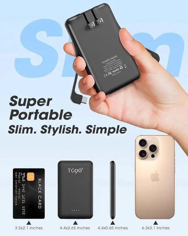 Card Size: This external battery backup is designed to be an ultra mini and slim model with dimensions of 4.4 x 2.7 x 0.65 inches and 0.29 pounds size of credit card which lets it easier to slip into your pocket. Good choice as travel accessoriesSimultaneous