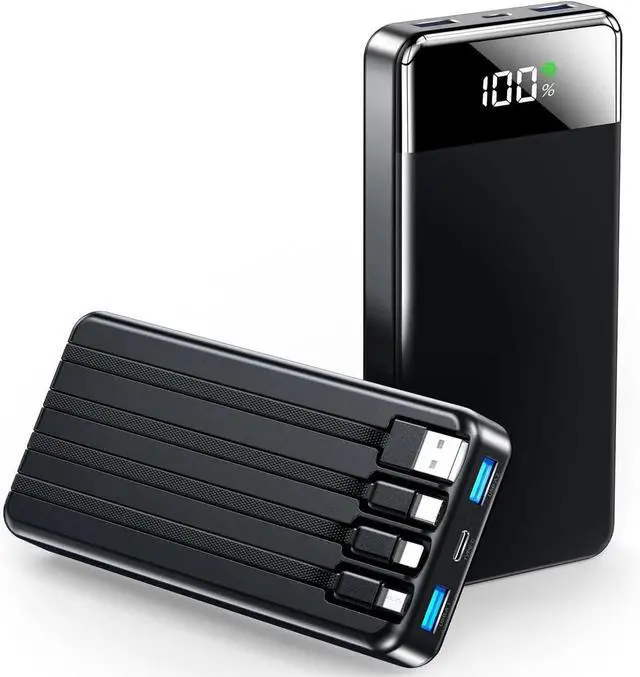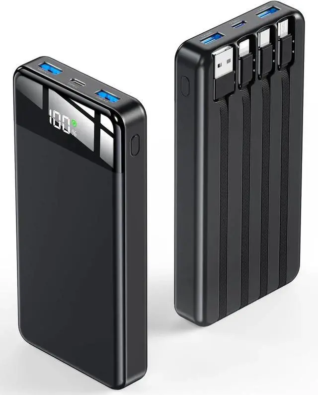 Built-in Cables: N6 USB C portable charger has 4 built-in cables (iOS Type C USB A Micro) and 3 Charging ports (USB A 1/2 Type C) compatible with almost all types smart devices on market such as iPhone 16 15 14 13 12 11 Series XR XS Max S24 S23 S22 S21 S20 A52 A32 Z fold series Z flip series and Google Pixel series and other Android phones iPad tablets etc... All in One