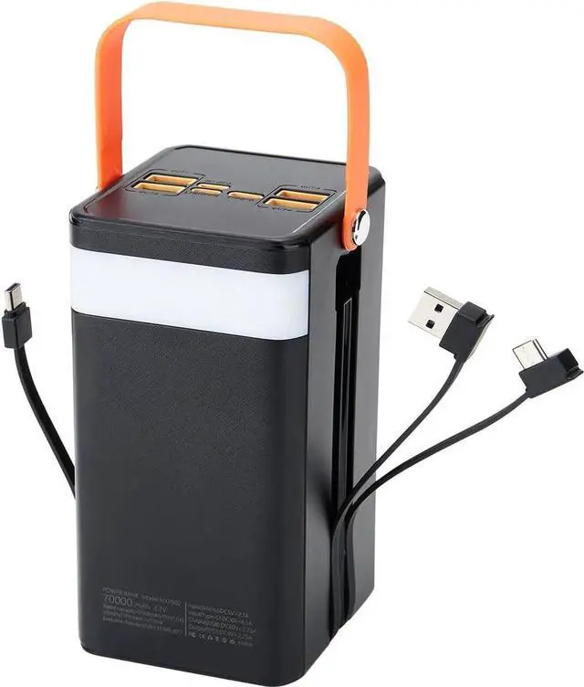 Built-in Cable Compatible with most cell phones such as iPhone Galaxy series headphones bluetooth speakers mini fans and other USB-enabled devices. 70000mAh Ultra High CapacityThis solar power bank with 70000mAh capacity is perfect for outdoor using like camping hiking boating etc it can also be used for home emergency. It can charge your electronic devices 8-12 times. Keep your phone always on no need to worry about out of battery. High-speed Safety ProtectionHigh-quality battery pack in the meanwhile built in quality batteries and comprehensive multiprotect safety system include overcharge protection short circuit protection temperature control and more ensure complete protection for you and your devices.
