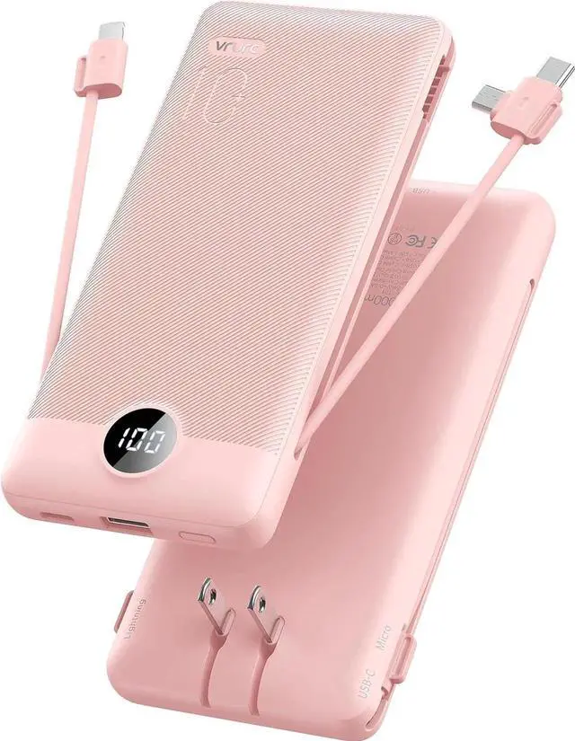Also the 3D texture on the surface provides you with a better 3D touch and grip to prevent the portable charger power bank and phone from slipping off. [Wide Compatibility] Using the built-in charging cables to charge the portable battery charger is compatible with iPhone Android devices and USB-C most mobile phones and smart devices etc. This battery pack can meet most of the charging needs of daily life. [PRODUCT PACKAGE] 1x Portable Charger 10000mAh 1x User Manual.