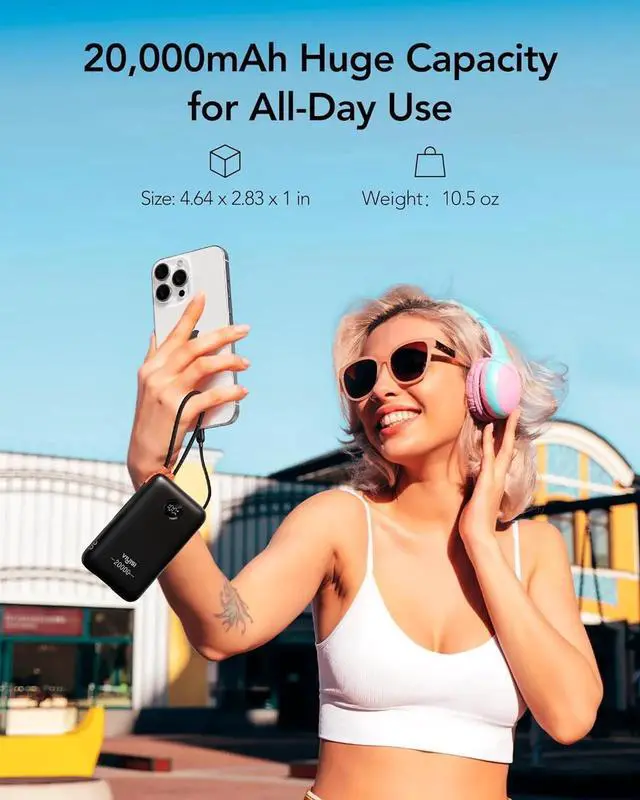 Ultimate Convenience: Equipped with integrated USB-C and Lighting cables this power bank is perfectly compatible with iPhone 15/14/13/12/11/XR Galaxy Google Pixel LG and all smartphones with Type-C ports; just plug in and charge anytime anywhereUniversal