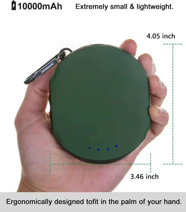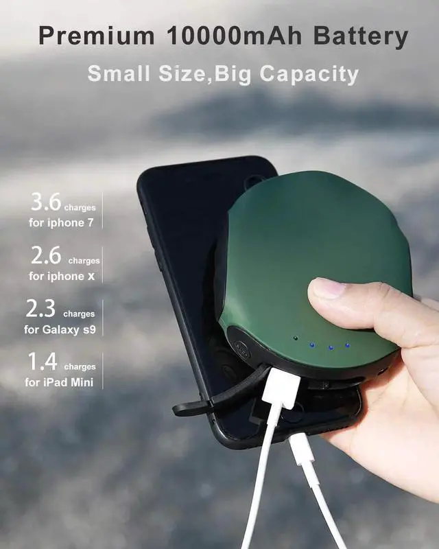 True 10000mAh Power bankMulti-protection safety system and high capacity battery pack. Lasts 3-4 full charges for iPhone 7 2-3 charges for iPhone X 2-3 charges for Galaxy S9 and 1-2 charges for iPad Mini. with Compass and Flashlight FeaturesIt can be well held in your hand. 4.05 * 3.46 * 1.1 inch and 8 oz. Built-in compass can explore direction. Carabiner allows charger to be hooked onto your backpack. LED light can be used as a torch in the dark for emergencies. It will be your best companion when you are outdoors or traveling.