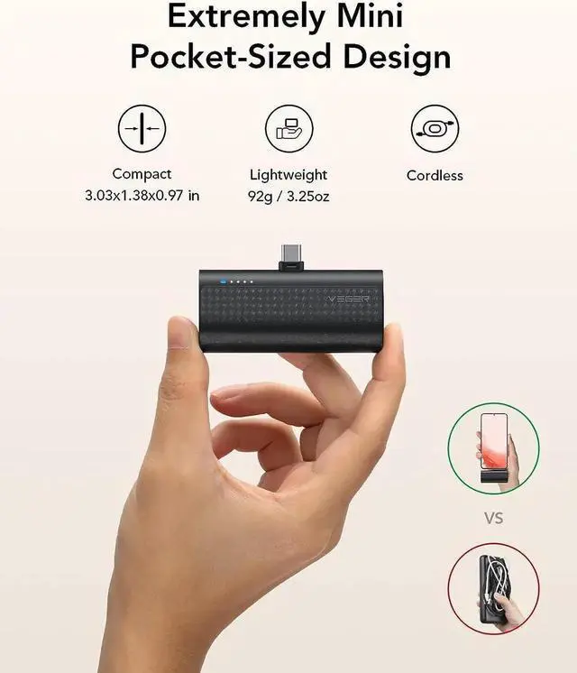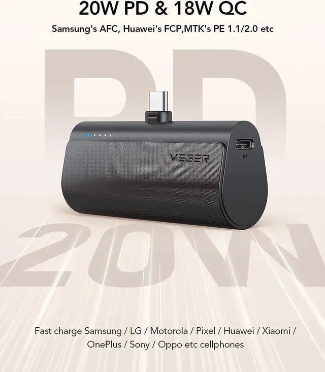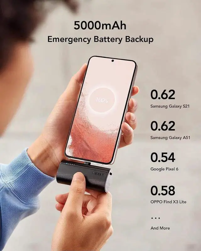 USB C Portable Charger: Built in a USB C plug widely compatible with iPhone 16/15 Android like Pixel LG Motorola and more other Android phones etc. Perfect for S22 S21 S20 Galaxy A52 Note 20 Ultra S10 Note 9 S9 Note 8 Galaxy Fold Flip 3 Fold 3 Series; LG G7 ThinQ V40 ThinQ V35 ThinQ Stylo 4 G8 G6 Q6; Moto G7 G6 G7 Plus G7 Play Moto Z2 Play E5 G6 Plus Z3 Play etc; Google Pixel 5A Pixel 6 etc; Pocophone Oppo TCL or other Type C Phones etc.
