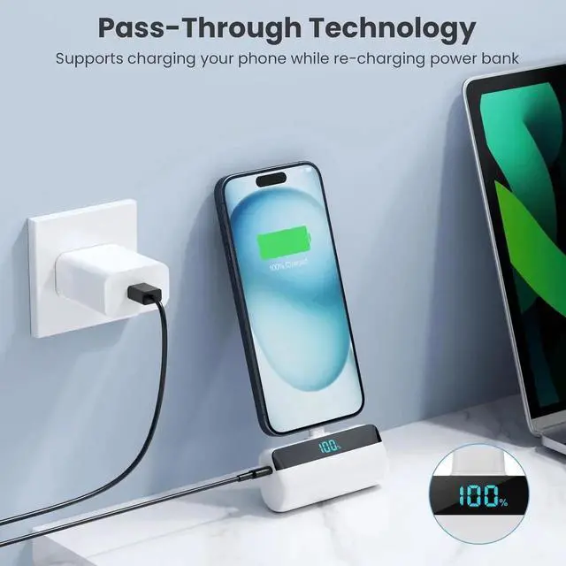 USB-C Widely CompatibilityThe portable charger usb c is not only Compatible with iPhone 16/16 Plus/16 Pro/16 Pro Max iPhone 15/15 Plus/15 Pro/15 Pro Max iPad Pro/iPad Air/iPad Mini 6 but also for Galaxy/Note Google Pixel Oneplus and other Android phones. PD 3A Fast Charging USB C Power BankThe mini portable charger usb c power bank supports PD 3.0A quick speed charging getting your cell phone from 0% to 50% in just 30 minutes. Ensure rapid power boost at critical moments! Plug in and ChargeFarewell to extra cables! The power bank with the USB-C connector can be connected directly to your phone for charging without the need for an additional data cable.