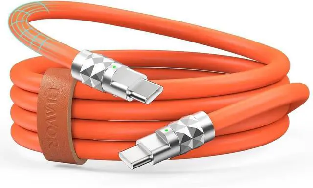 Durable Thick Silicone: This heavy-duty durable silicone usb cable has a lifespan of over 30 000 bends! It features a sturdy zinc alloy connector and skin-friendly silicone design making it waterproof and easy to clean. The Type C to Type C charging cable is 4 FT tangle-proof and comes with a stylish leather strap for easy organization and storage providing great convenience