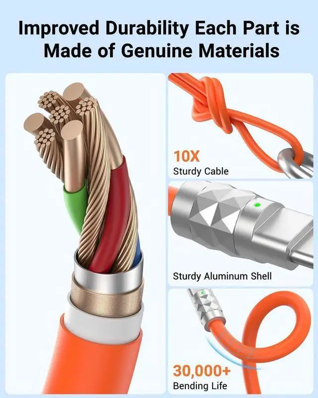 Charging: This usb charging cable supports PD 3.0 and QC 3.0 fast charging outputs up to 20 V/3 A quickly charges iPhone 15 to 60% in just 30 minutes. Suitable for 18W/30W/45W/60W and other USB-C adaptersSuper