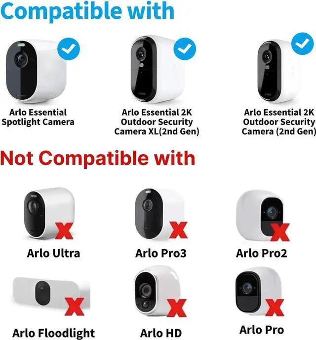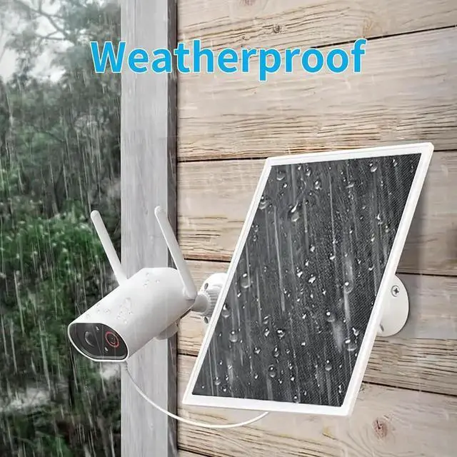 Compatible withSolar Panel Compatible with Arlo Essential 2K Outdoor (2nd Gen) /Essential XL Camera (2nd Gen) /Essential Spotlight Eufycam 2C/2C Pro/E40/E20/2/2 Pro/E or other security camera with typeC and Micro USB plug chargerWaterproofIP66 Waterproof Dustproof -20°-50° heat resistantCold resistant make your use more reassuringEasy to Install The flexibility of the 360 °+90 ° bracket allows the solar panel to better face sunlight from any angle and the installation is simple with all accessories included for installationPackages Include2x Security Camera Solar Panel 2 X 3m( 9.8 ft) Cable with typeC and Micro USB plug charger 2 X 360-Degree Mounting Bracket 2 pack Circle cable clips with steel nail Camera Not Included.