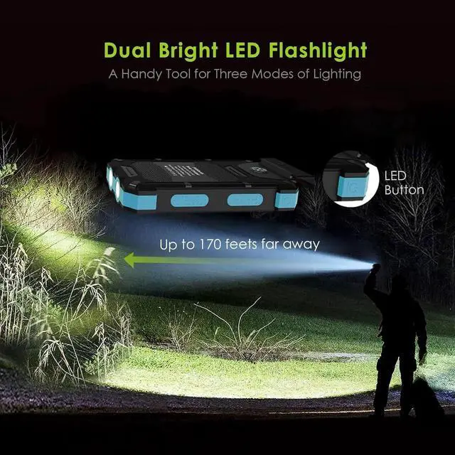The Solar Powered Charger: Equipped with compact solar panel which can recharge the battery itself under sunlight. Also you can use micro and Type C input to full charge it. Please note that the solar charging function depends on sunlight intensity and conversion rate. It will take a long time to fully charge which is suitable for Outdoor Camping Travel??