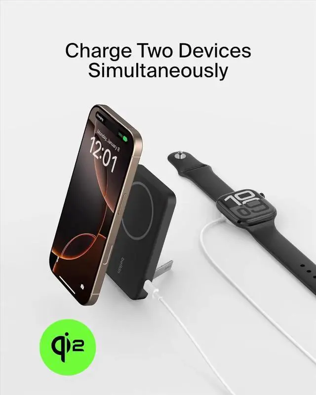 FAST PORTABLE CHARGING W/ QI2: Get up to 15W of fast charging in Pass-Thru Mode with Qi2 for iPhone and other compatible Qi2-enabled devices. This wireless charging technology features magnets that allow for easy alignment.