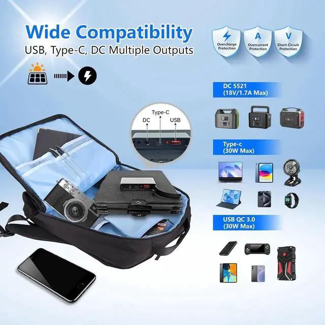 ![Alt view image 3 of 6 - [Ultra Light] 30W Cell Phone Solar Chargers for iPhone and Android Portable Solar Panels for Camping Hiking Solar Phone Charger for iPhone iPad Tablets Backpacking Solar Panel Foldable](https://c1.neweggimages.com/productimage/nb640/C280S25092301RMJS00.jpg)