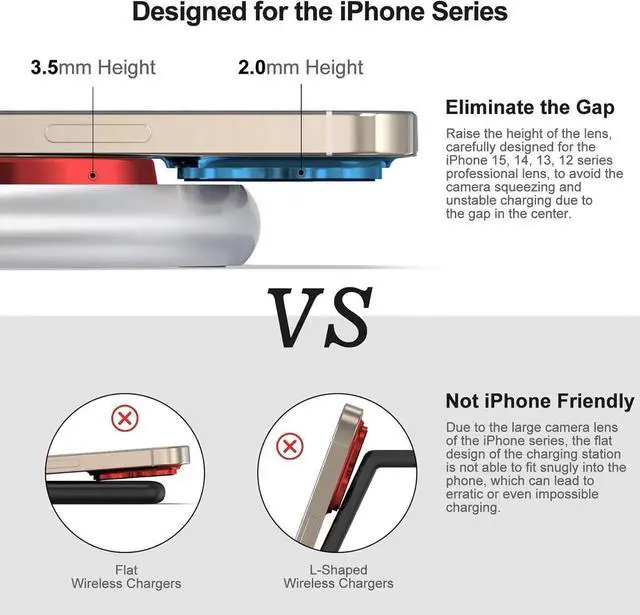 ZINC ALLOY WIRELESS CHARGING PAD: Made of high quality zinc alloy material with excellent heat dissipation the heat dissipation performance is more than 50% higher than that of plastic material which allows us to charge faster and better protect the health of the battery.