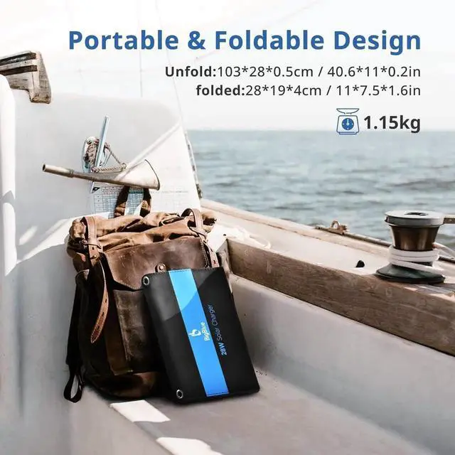 Easy To Carry: With a compact and portable size ( 11.1 × 8.3 × 0.8 in folded) BigBlue foldable solar charger is small and light enough to fit into any camping backpack hiking daypack or emergency kit. Theyre also good for stashing in an emergency kit during hurricane season.