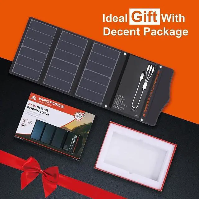 [Won Many Awards] - The LX PB21 wins the prestigious 2023 Red Dot Design Award. Also It has been featured in Bounce Magazine's list of 'Music Festival Must-haves! ' Perfect for harnessing the sun's energy to power up your devices and small enough to carry around on a backpack! [21W Top Quality Solar Cells] - Made from well-known brand high converting monocrystalline cells this 21W solar panel achieves a 23.4 % conversion rating charging your cell phone quickly and efficiently. [18w On-the-Go Charging] - Wherever the adventure takes you easily charge your smartphones tablets cameras and more with USB-A and USB-C ports.