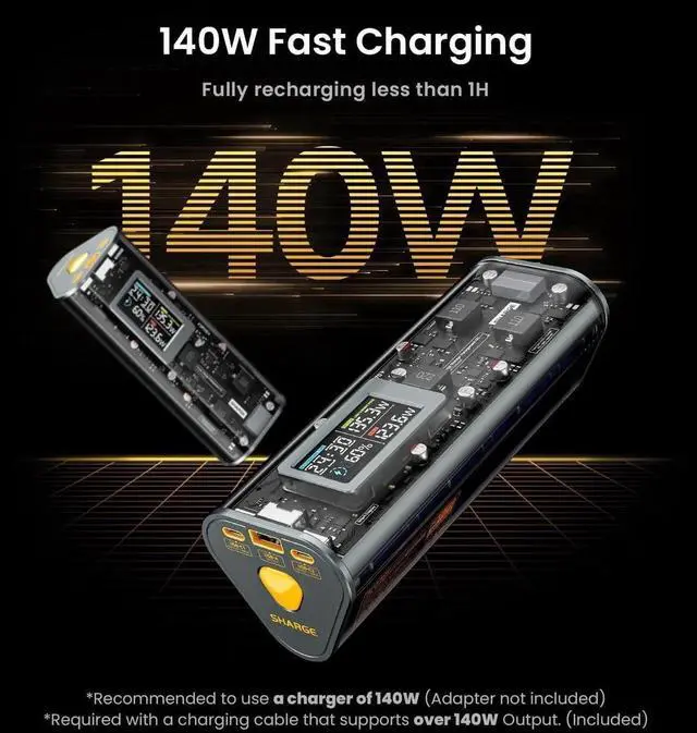 Total Output: Charge 3 devices simultaneously with two 140W USB-C and 1 USB-A port powered by PD 3.1140W PD 3.1
