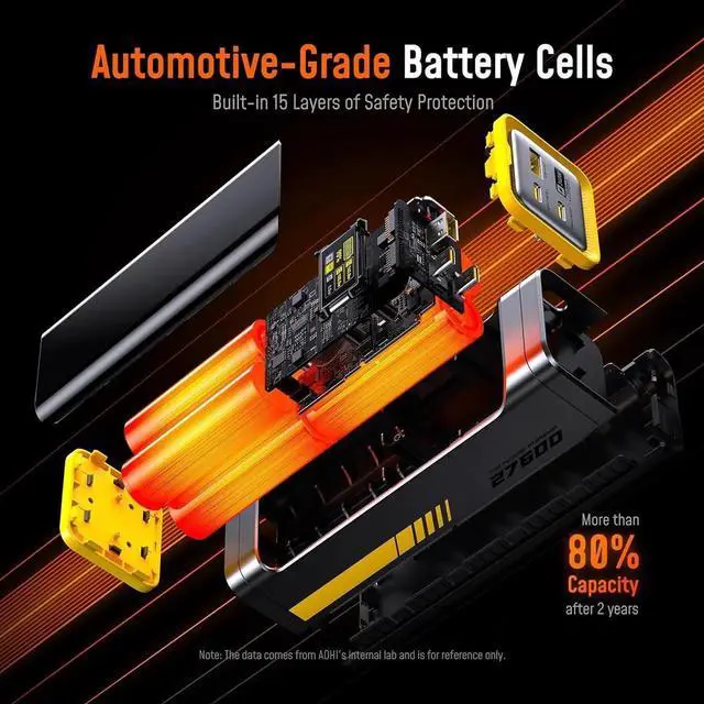 Multiple Safety Protection: AOHI Starship camping power bank uses automotive-grade battery cells that are known for its safety and and industry-leading efficiency. it's built to last with over 1000 charge cycles which is over 3 times the lifespan of ordinary power banks. Equipped with the newly upgraded AOHICE 3.0 temperature control technology it ensures real-time temperature control and rapid heat dissipation while delivering high-power output. Additionally 15 layers of built-in safety protection safeguard the Starship power bank your devices and you