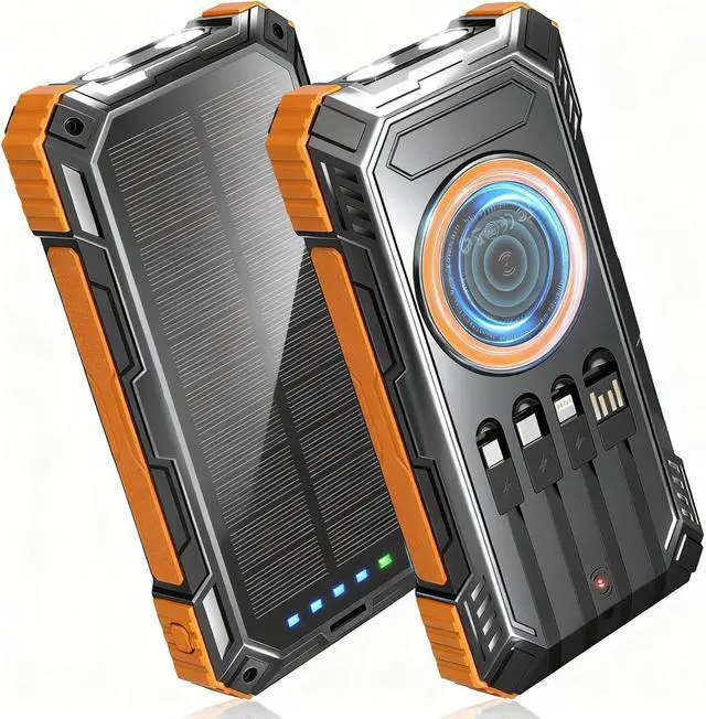 [49800mAh Large Capacity]: Equipped with a 49800mAh high-quality, high-density lithium polymer battery, this solar power bank can charge your devices multiple times. It can be recharged via an adapter or solar energy, so you don' t need to worry about power outages. The solar charger is equipped with an intelligent protection IC chip that provides temperature protection, overvoltage protection, overcurrent protection, and short circuit protection for the battery pack, ensuring charging safety
