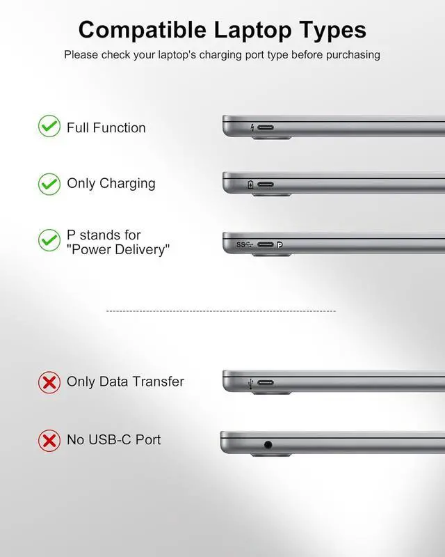 Charge THREE at Once Laptop portable charger with two USB-C port and one USB ports built-in, it can juice up THREE devices simultaneously. Triple-port design allows you to share portable power with families and friends.
