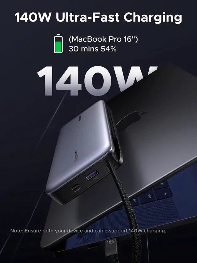 165W Max Output Multi-Device Fast Charging Without Limits: Charge your laptop and phone simultaneously with up to 140W single-port and 165W total output. Delivers enough power for high-performance laptops, tablets, and other USB-C devices, supporting seamless productivity through long work sessions.