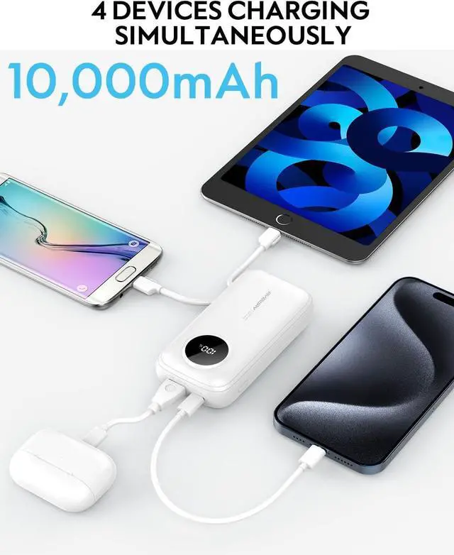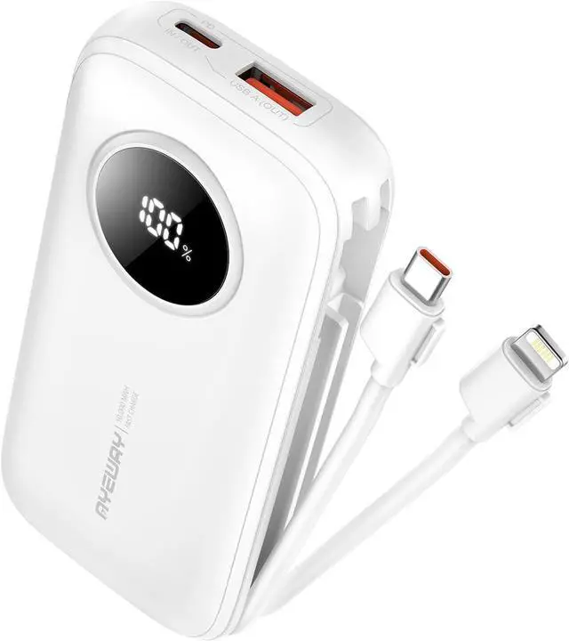 Small Size POWER on-the-go: Type-C Fast Charge Portable charger Power bank with 10000mAh Capacity is perfect for Airplane Travel, Camping, Hiking, Vacation, GPS when using motorcycle, Business trip, Gift for the one you care. Keep your phone always on, no worries about losing contact with anyone when runing out of battery. With the USB C output port, the item will work with most latest devices, with the built-in cords, you dont need to bring extra cords if you dont want to.