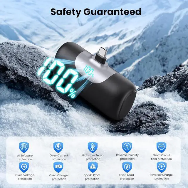 Plug-in Portable Charger for iPhoneIf you are tired of carrying cables, this mini portable charger is definitely best choice for you. Built-in usb c connector, just plug into & charge, higher quality, safer and more reliable and longer-lasting life after over 20, 000 continuous plug-in test. No need extra cable!