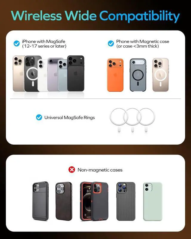 Snap & Charge Enjoy the ultimate wireless freedom. Just snap it on for instant 15W high-speed charging ( 7.5W for iPhone)no fumbling with cables, just simple, effortless power