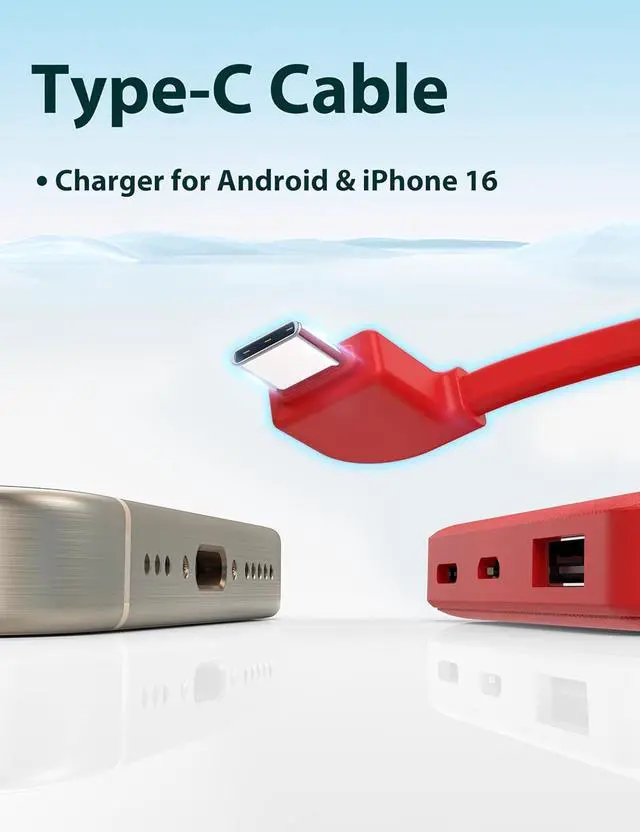 Three In One: This power bank is built-in type C cable and other cables that compatible with mobile phone directly. You do not need to take charging cables.