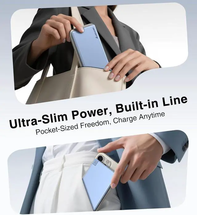 [Built-in USB-C Cable]-Portable chargers for multiple devices, such as iPhone 15 16 17, USB-C devices, Android devices, headphones, keyboards, tablets and other USBC devices. No need to carry a separate charging cable USB-C port phones. (Not for iPhone 14 Series and Older Series)