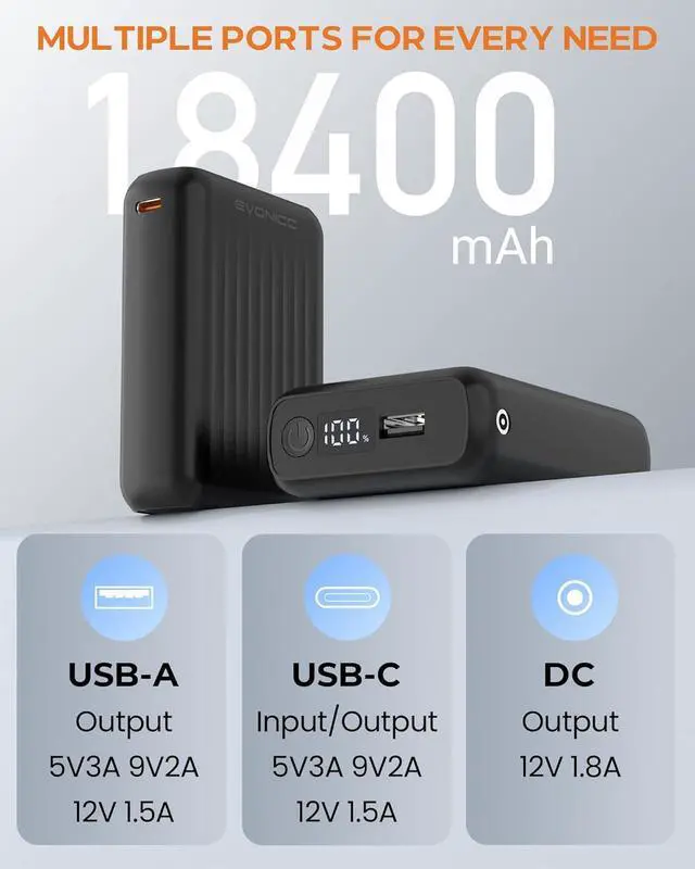 LONG LASTING WARMTH: Compact and powerful, 18400mAh large capacity provides long-lasting power for your heated clothing. (56 hours on high, 78 hours on medium, and up to 1014 hours on low). One charge can meet your daily use needs for a day. Whether you' re commuting, working outdoors, or enjoying winter sports, you can count on all-day warmth.