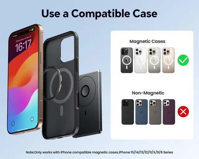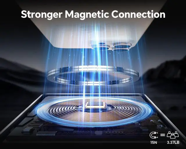 Magnetic Charging, Easy to Use-With an enhanced 15N magnetic force, this Magnetic power bank provides 4x stronger attachment, keeping your phone firmly in placeeven during movement or bumps. The magnetic charging function of the MiniMag Power Bank is very convenient! You don' t need to plug in a cable to charge your phone! Just attach the power bank to your phone