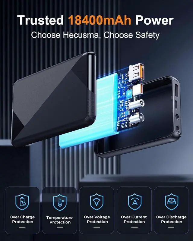 Clear LED Display: Unlike conventional battery pack for heated jacket that only have an indicator light, the Hecusma Mobile power bank for heated jacket has an LED display. This allows you to easily and precisely read the remaining battery level in percent so that you can charge in time and not miss a warm moment.