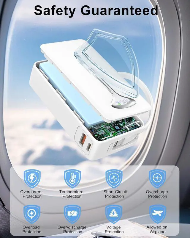 Airline Approval and Safety Guarantee: Certified by UL 2056, CE, RoHS, IEC 62133, and FCC, this power bank for laptops meets aviation safety standards. With intelligent power management and premium materials, the portable power bank automatically adjusts current and voltage for optimal charging. Enjoy protection against overcharging, overvoltage, overcurrent, and short-circuiting for a reliable, safe experience on the go. Ideal for both travel and everyday use.