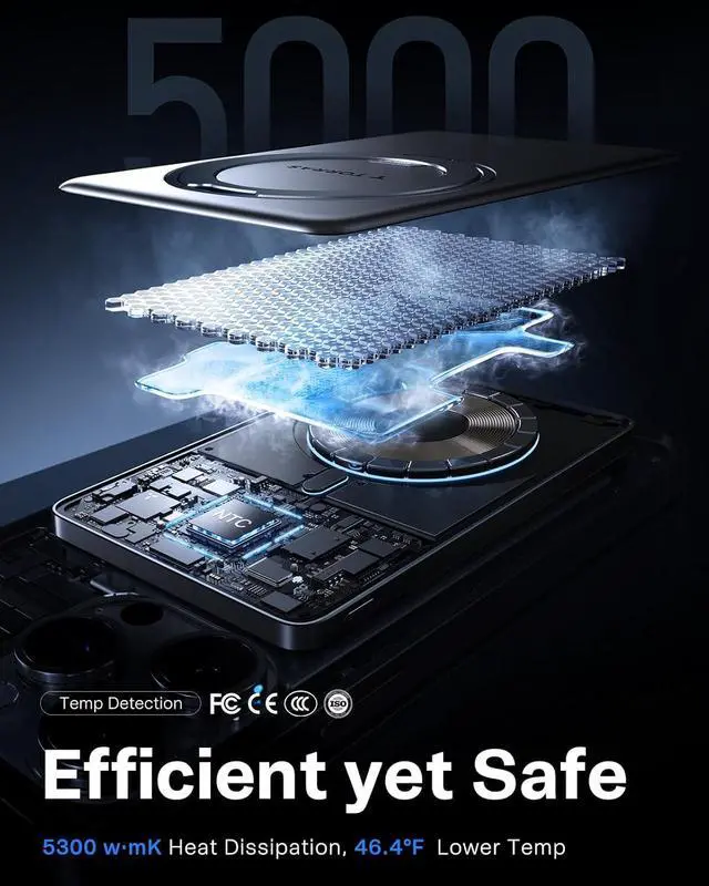 Upgraded Power CoreEquipped with a high-capacity Li-polymer battery, dual graphene thermal control, and an NTC temp chip delivering faster, safer charging. With 36, 000 temperature checks per hour and 5300 W/m·K thermal conductivity, it stays up to 8°C cooler during fast charging. Your Safety Guardian, always reliable.