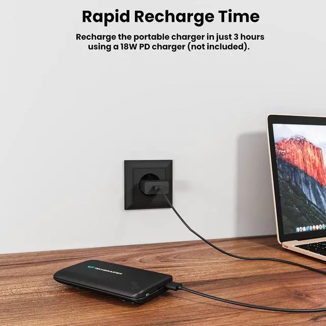 Fast charging & recharging: Charge your device from 0% to 54% in 35 minutes with 18W USB ports. Wireless pad provides 10W charging. The power bank recharges in 3 hours with an 18W PD charger. (Not Included)