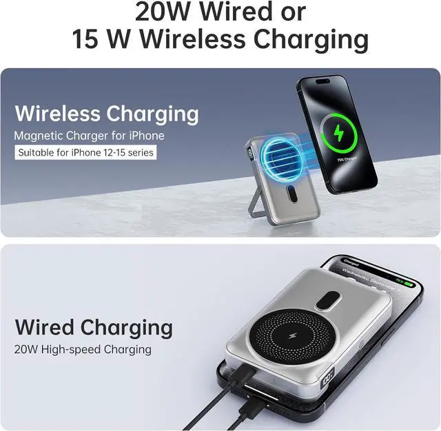 Fast Charging with 10000mAhEquipped with USB-C PD 20W fast charging output this wireless power bank can charge your iPhone up to 60% in just 30 minutes. The 10000mAh high-density lithium polymer battery offers up to 2 full charges for most iPhonesperfect for travel, daily use, or emergencies.