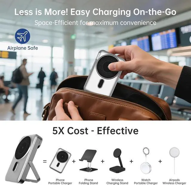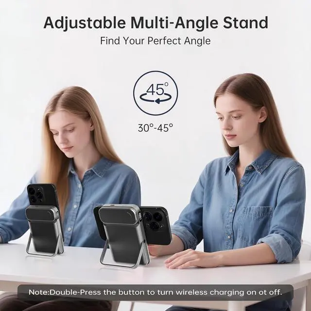 Foldable Stand for Hands-Free UseEquipped with a sturdy foldable stand, this wireless charger for MagSafe iPhone easily transforms your device into a mini workstation or entertainment screen while charging. Use it vertically for FaceTime or horizontally for Netflix. More than just a power bank, its a practical portable charger that adds convenience to work, travel, or daily use.