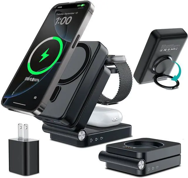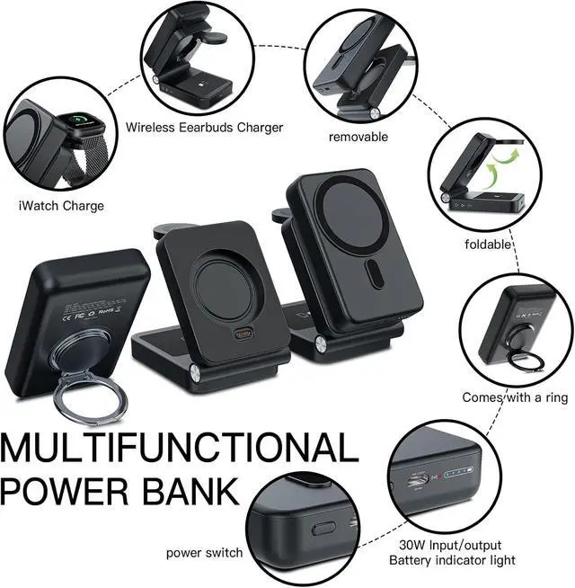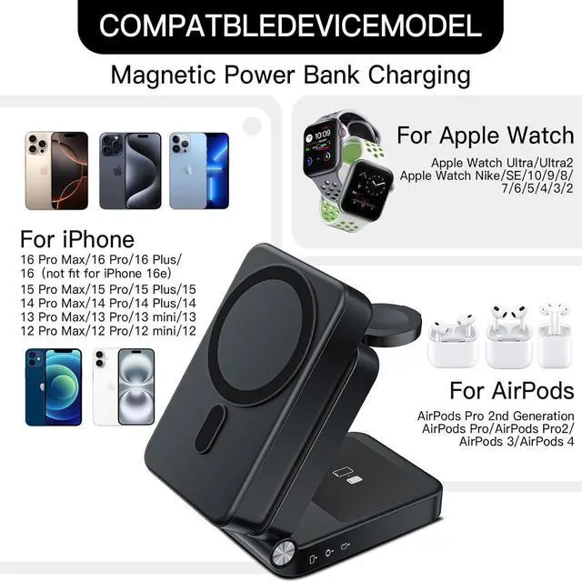Foldable and Travel-Friendly This foldable 3-in-1 for MagSafe power bank fits effortlessly in your purse or pocket, replacing tangled cords and bulky chargers. Whether youre traveling or on a business trip, it powers all your devices while taking up minimal space, making it the perfect all-in-one travel accessories
