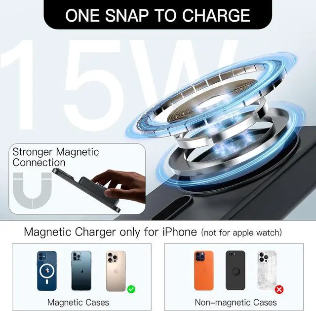 Upgrade 3 in 1 Wireless Charging StationThe magnetic wireless charger is compatible with iPhone 17, iPhone 17 Pro Max, iPhone 17 Air, iPhone 17 Pro, iPhone 16, iPhone 16 Plus, iPhone 16 Pro, iPhone 16 Pro Max, iPhone 15, iPhone 15 Plus, iPhone 15Pro, iPhone 15 Pro Max, iPhone 14, iPhone 14 Plus, iPhone 14 Pro, iPhone 14 Pro Max, iPhone 13, iPhone 13 Pro, iPhone 13 Pro Max, iPhone 13 mini, iPhone 12, iPhone 12 Pro, iPhone 12 Pro Max, iPhone 12 Mini, the watch area is only for Apple Watch 11/10/9/8/7/6/5/4/3/2/1/Ultra 1/Ultra 2/Ultra 3, and earphone area is only suitable for AirPods 4/2/3/Pro 1/Pro 2.