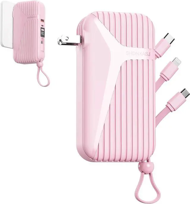Portable Charger With Wall Plug: Power bank built in foldable AC wall plug, compatible with iPhone, Android, and USB C devices. Built-in AC wall plug allows you to charge directly from a wall outlet, no need to carry charging cables for smart devices