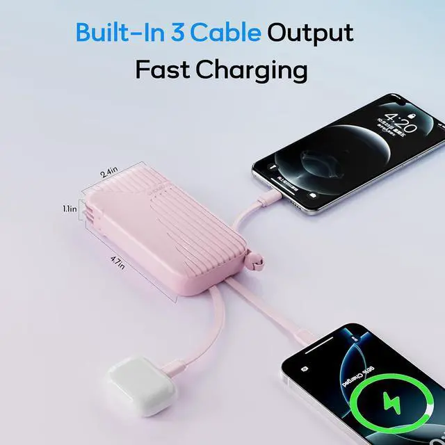 Portable Charger With Built in Cable: Portable charger power bank has 3 built-in cables (Micro USB, USB-C, Lightning ) and recharge battery pack charger portable easily with 2 options, AC wall plug directly charges the power bank. No matter output or input, you dont need to carry charging cables. Get rid of messy cables, charge at anytime and everywhere