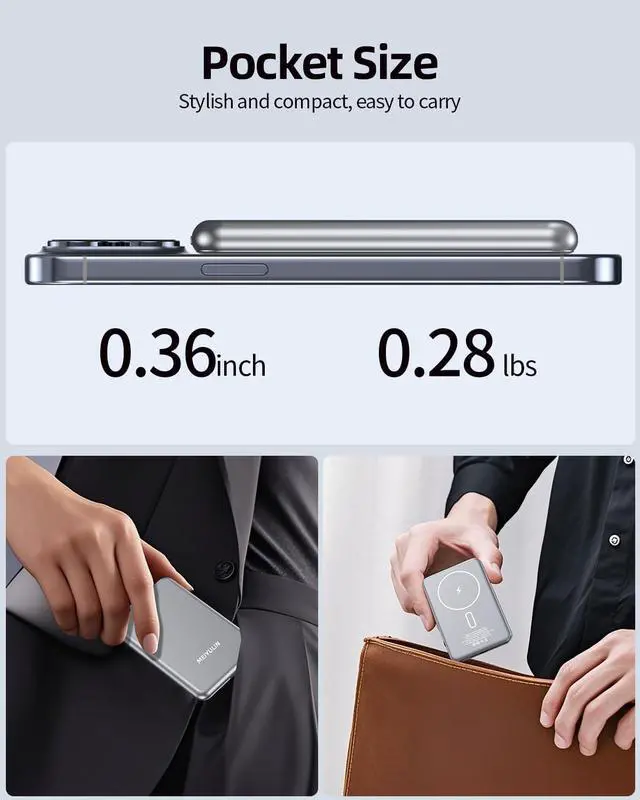 Stylish Appearance: Ultra-thin design, metal texture, exquisite appearance, long-lasting durability, only 0.28 pounds, dimensions of 3.93 * 2.55 * 0.39 inches easy to fit in your pocket or bag, suitable for daily outings travel