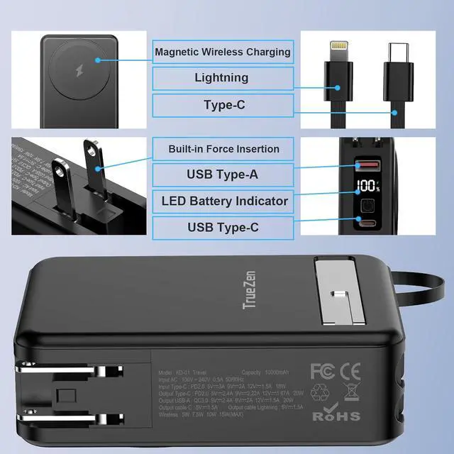 All-Day Power Performance: Bateria portatil para celular 10000mAh portable charger power bank with enough capacity provides 24-hour+ run time for iPhone/Samsung cycles, dual-engine refills power bank itself in 1.8 hrs via Type-C PD input, all-in-one charging station hub reduces luggage weight by 60% versus traditional chargers. Newly battery pack charger portable design for iphone, ipad, android charger fast charging.