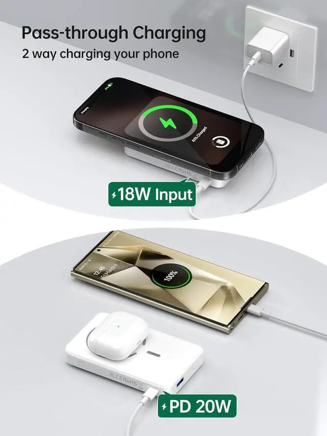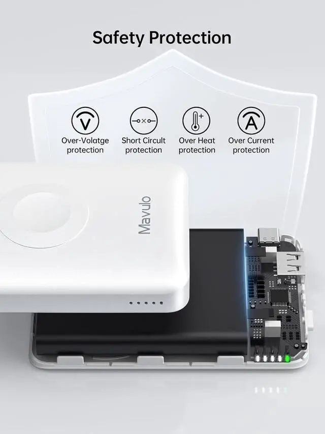 Safe & Pass-through Charging: Built-in protection against overcharging, overcurrent, and short circuits ensures safe charging. Support pass-through charging, smart chip and temperature control technology optimize charging performance and device safety