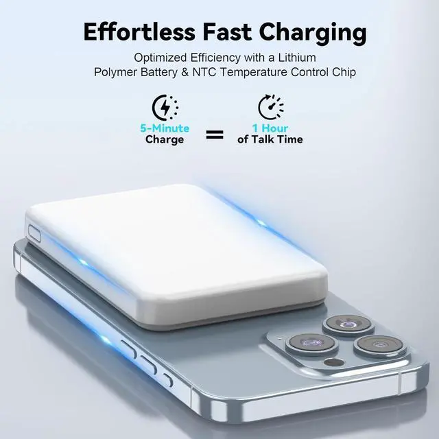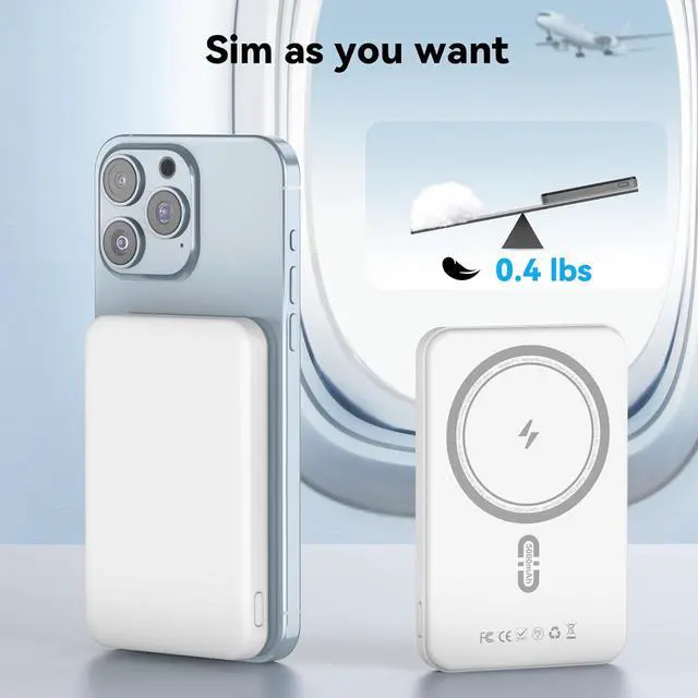 Ultra-Slim & Lightweight Design: Our magnetic magsafe portable charger Measuring only 4 × 2.6 × 0.47 inchesthe size of a credit cardand weighing just 0.4 lbs, magnetic wireless portable charger mini power bank easily fits in your pocket, purse, or backpack. Whether you' re traveling, camping, or on the go, youll never worry about a dead phone battery again! Airplane-friendly for hassle-free travel.