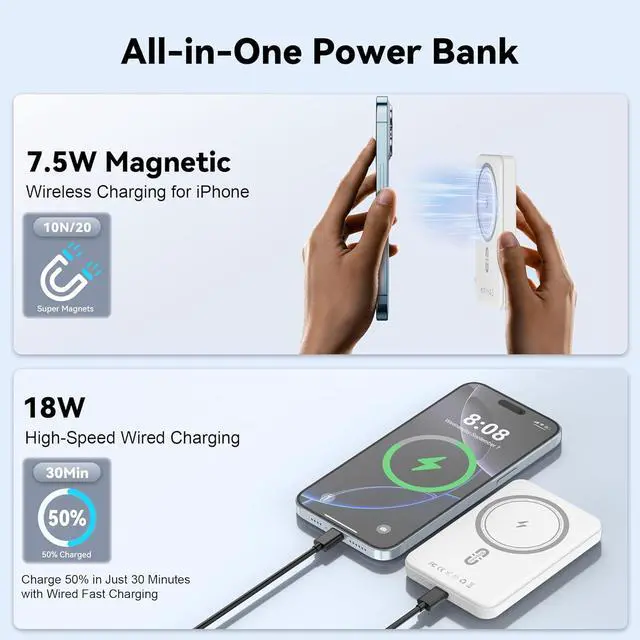 Magsafe Portable Charger: wireless portable charger Your All-in-One Wireless Charger & Power Bank! Stay powered up effortlessly, anytime, anywhere.