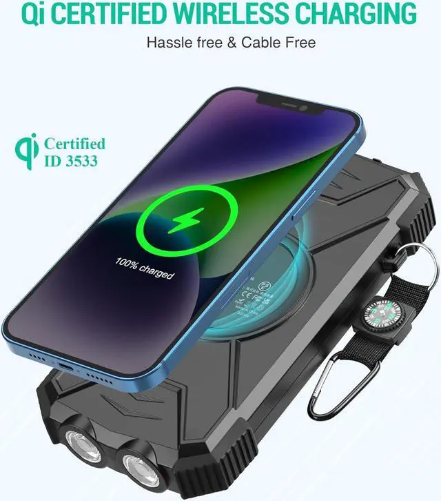 Leading USB C Input Output Tech and Qi Wireless: The latest upgrade includes a USB-C output with 20W fast charging capability, which can charge your iPhone 15 to 65% in just 30 minutes, and zero damage to your devices. Support charging 3 devices simultaneously, multiple output/input methods, freeing your worries of a power outage. Compatible with almost all smart devices, such as iPhone, ipad, Samsung, etc.
