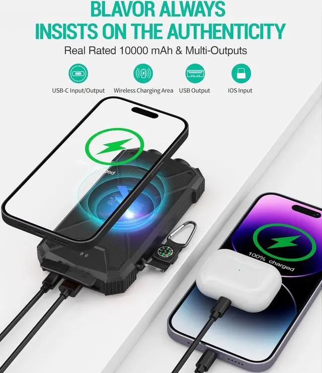 • Brand-Oriented and Outdoor Charger Pro: With over 10 years of experience in solar power banks, BLAVOR has already gained the favor and trust of millions of global users. BLAVOR only uses the highest-grade materials, to provide the most reliable and safe products.