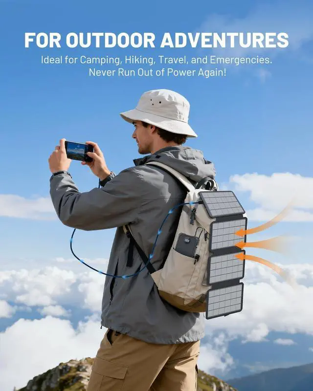 Separate design- Day/Night UseEquipped with four foldable solar panels and 10000mAh Power Bank, Use the power bank alone at night can connect it to a 14W solar panel to charge during the day, Recharge the bank fully in 2hrs (sunlight). Ideal for camping and hiking
